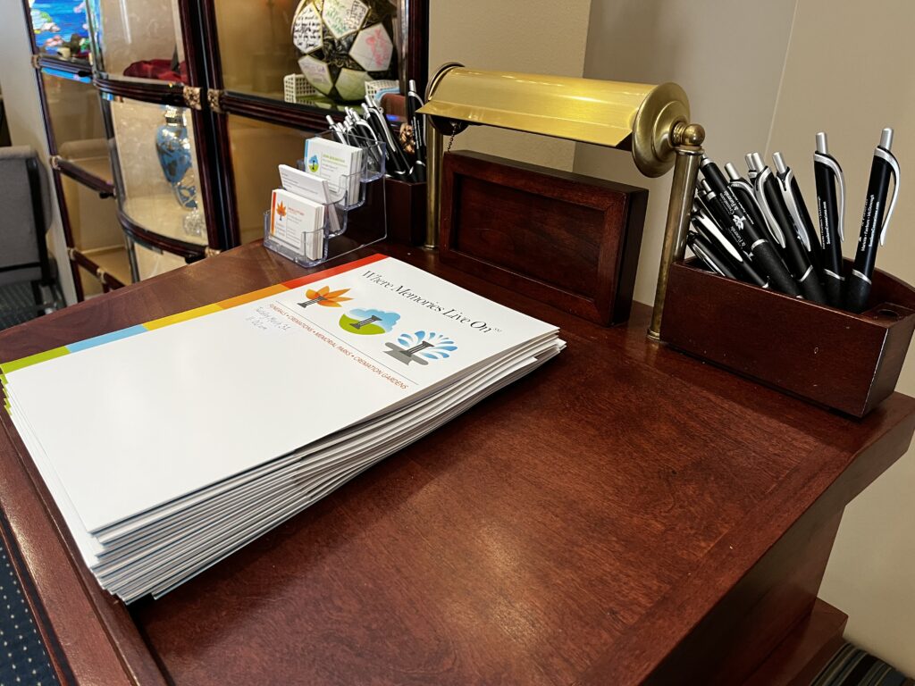 Once you’ve decided on a service type, your funeral director and team will need items like clothing, photos, an obituary and musical selections to make your service go smoothly. Ask for a list so you don’t have to remember each item and then provide them as soon as you are able. This will give your funeral team enough time to return proofs and previews of memorial folders, online obituaries and memorial slideshows. If any changes or corrections are needed, let your team know—we want every detail to be perfect!