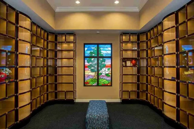 We have two beautiful on-site chapels and can accommodate a small and intimate service in our Funeral Home Chapel, or a large funeral service or memorial in our state-of-the art Columbarium Chapel, which features a grand piano, organ, drop-down screen for videos, complete audio-visual services, and galley kitchen. All cremation and funeral services are performed on site by our own employees. Witness Cremation is also available.